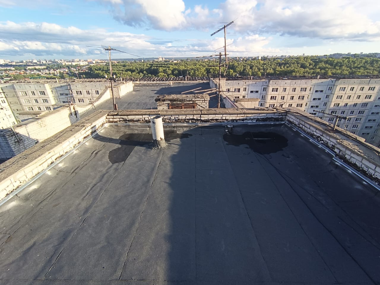 Произведен ремонт кровли над шахтой лифта
